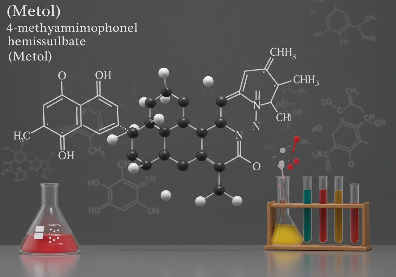 A 4-(metilamino)fenol szabad bázis képlete C₇H₉NO. Amikor ez hemiszulfáttá alakul, a teljes vegyület képlete (C₇H₉NO)₂·H₂SO₄ lesz. Ez a képlet pontosan tükrözi, hogy két molekula 4-(metilamino)fenol kapcsolódik egy molekula kénsavhoz, amely kettős protonálást követően szulfátiont képez, és ezzel két aminocsoportot semlegesít. Ez a kémiai szerkezet a metol egyedi redukáló tulajdonságainak alapja, melyek nélkülözhetetlenné teszik a fényképészetben.