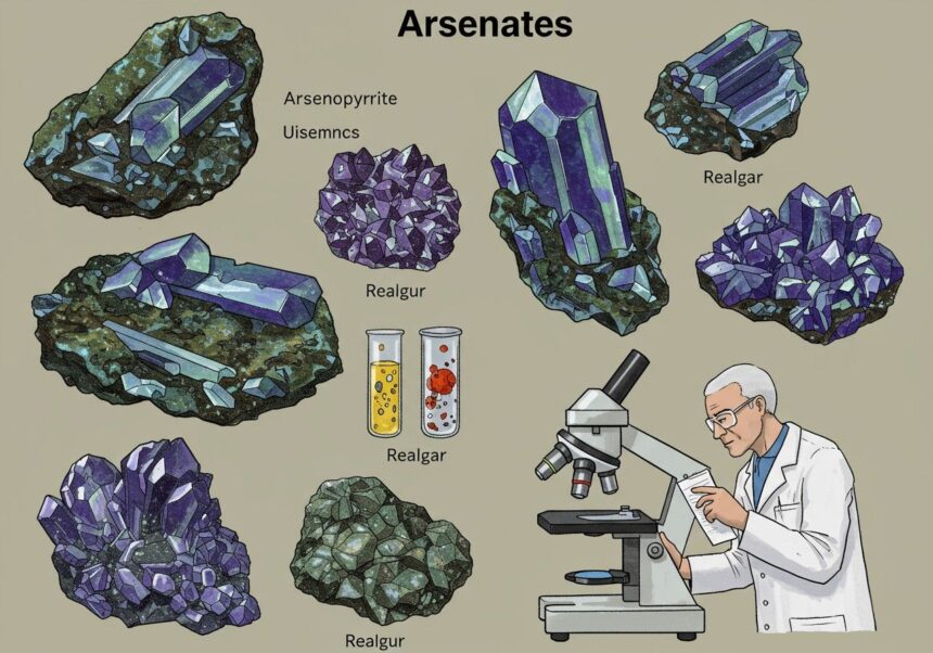 Az arzenátok különböző formákban létezhetnek, attól függően, hogy milyen kationokkal kapcsolódnak. Léteznek ortoarzenátok (pl. nátrium-ortoarzenát, Na₃AsO₄), amelyek a legegyszerűbb formát képviselik, és a szabad AsO₄³⁻ iont tartalmazzák. Ezen kívül ismertek piroarzenátok (As₂O₇⁴⁻) és metaarzenátok (AsO₃⁻) is, bár ezek kevésbé gyakoriak, és jellemzően polimerizált szerkezeteket alkotnak. Az ásványokban az arzenátok gyakran komplex rácsstruktúrák részei, ahol a fémionok (pl. réz, vas, ólom) kationként stabilizálják az arzenátionokat.