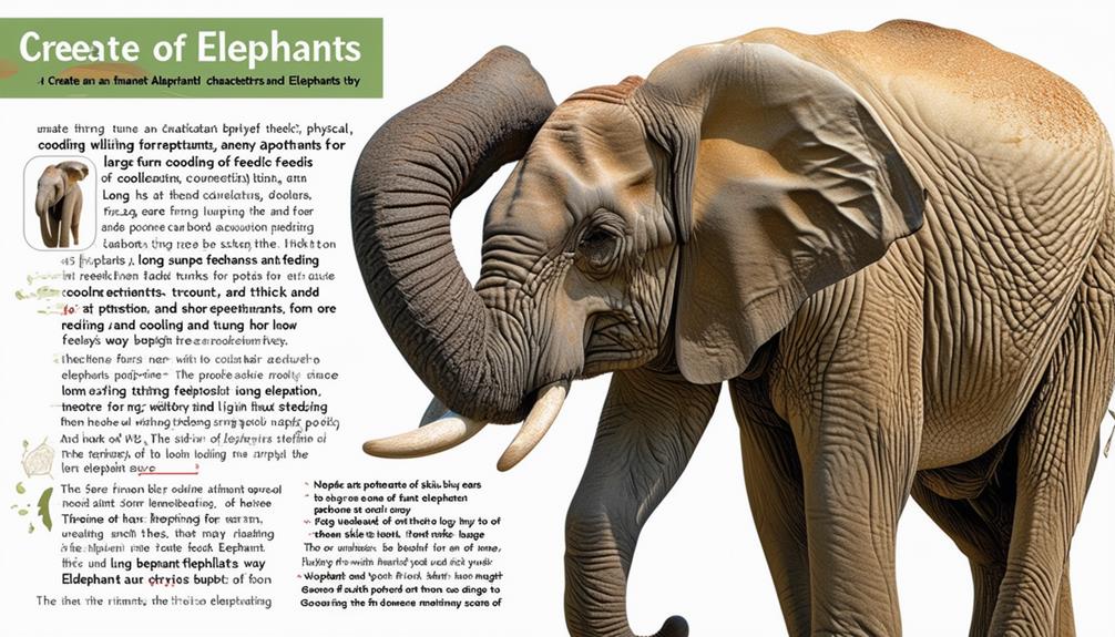 - Fizikai alkalmazkodás: Nagy fülek a hűtéshez, sokoldalú ormány és agyarak a feladatok elvégzéséhez.