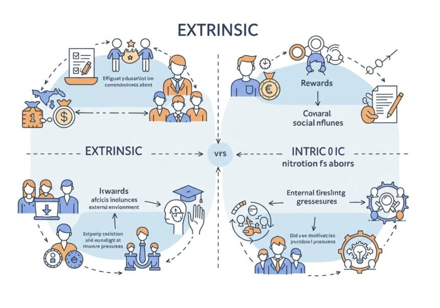 Talán az egyik legismertebb és leggyakrabban tárgyalt területe az extrinsic fogalmának a motiváció pszichológiája. Az extrinsic motiváció az a fajta késztetés, amely külső jutalmakból vagy büntetések elkerüléséből fakad, nem pedig a tevékenység önmagában rejlő élvezetéből vagy a belső elégedettségből. Ez az ellentéte az intrinsic motivációnak, ahol a cselekvést a belső érdek, az öröm, a kihívás vagy a személyes fejlődés vágya hajtja.