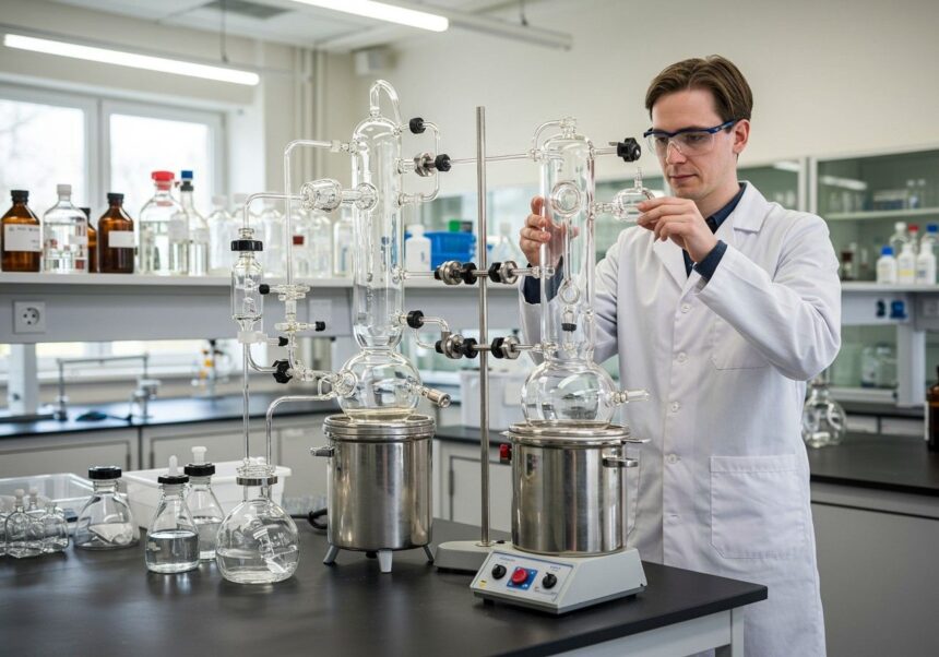 Mielőtt bármilyen mintát betöltenénk, ellenőrizni kell a rendszer épségét és tisztaságát. Győződjünk meg arról, hogy minden üvegalkatrész tiszta és sértetlen. Ellenőrizzük a vákuumtömítés állapotát, szükség esetén kenjük meg vagy cseréljük ki. Töltsük fel a fűtőfürdőt a megfelelő folyadékkal (víz vagy olaj) a gyártó előírásai szerint, és ellenőrizzük a szintet. Csatlakoztassuk a hűtőkört a kondenzátorhoz, és győződjünk meg róla, hogy a hűtőfolyadék akadálytalanul áramlik. Végül, ellenőrizzük a vákuumszivattyú megfelelő csatlakozását és működőképességét. A gondos előkészítés megelőzi a későbbi problémákat és növeli a biztonságot.