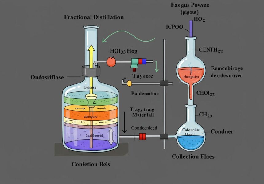 „A frakcionáló oszlopban minden egyes tányér vagy töltött szakasz egy mini-desztillációs egységként működik, ahol a gőz és a folyadék újra és újra egyensúlyba kerül, finomítva ezzel az elválasztás minőségét.”