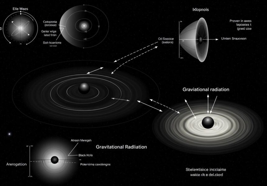 A gravitációs sugárzás koncepciója Albert Einstein általános relativitáselméletéből fakad, amelyet 1915-ben publikált. Elmélete forradalmasította a gravitációról alkotott képünket, eltávolodva Newton azon elképzelésétől, miszerint a gravitáció egy távoli vonzóerő. Ehelyett Einstein a gravitációt a téridő görbületével magyarázta, amelyet a tömeg és az energia jelenléte okoz. Képzeljük el a téridőt egy kifeszített gumilepedőként: ha ráhelyezünk egy nehéz golyót (tömeg), az bemélyedést okoz, és a közelébe guruló kisebb golyók (más égitestek) ebbe a mélyedésbe hullanak. Ez a mélyedés a gravitáció. Azonban Einstein elmélete ennél többet is sugallt: ha egy tömeg gyorsulva mozog, vagy ha két hatalmas objektum összeütközik és összeolvad, az nem csak statikus görbületet okoz, hanem hullámokat is gerjeszt a téridőben, akárcsak egy kő, amelyet tóba dobunk.