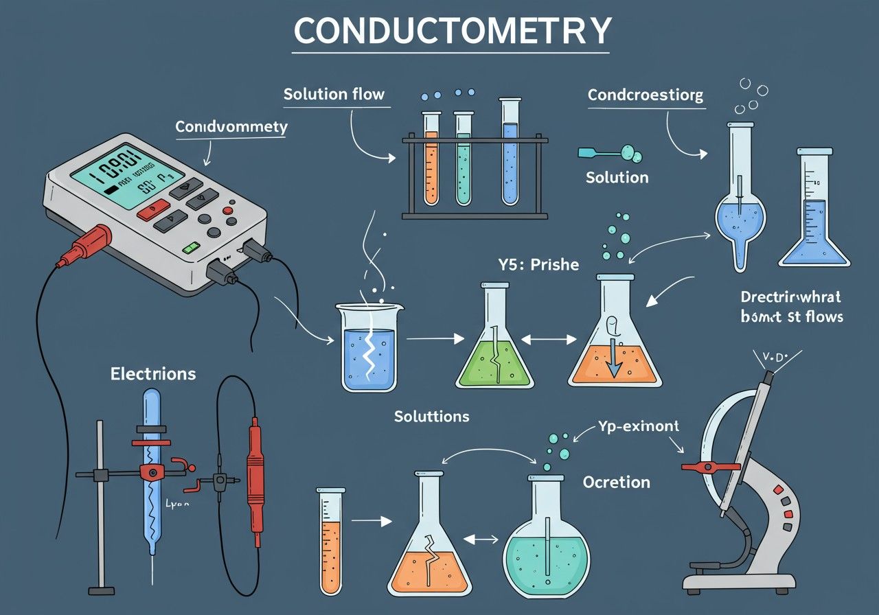 A konduktometria elméleti háttere az elektrolitoldatok fizikokémiájában gyökerezik. Az oldatok elektromos vezetőképességét számos tényező befolyásolja, mint az elektrolit típusa (erős vagy gyenge), az ionok koncentrációja, töltése, mérete, a viszkozitás, és ahogy már említettük, a hőmérséklet.