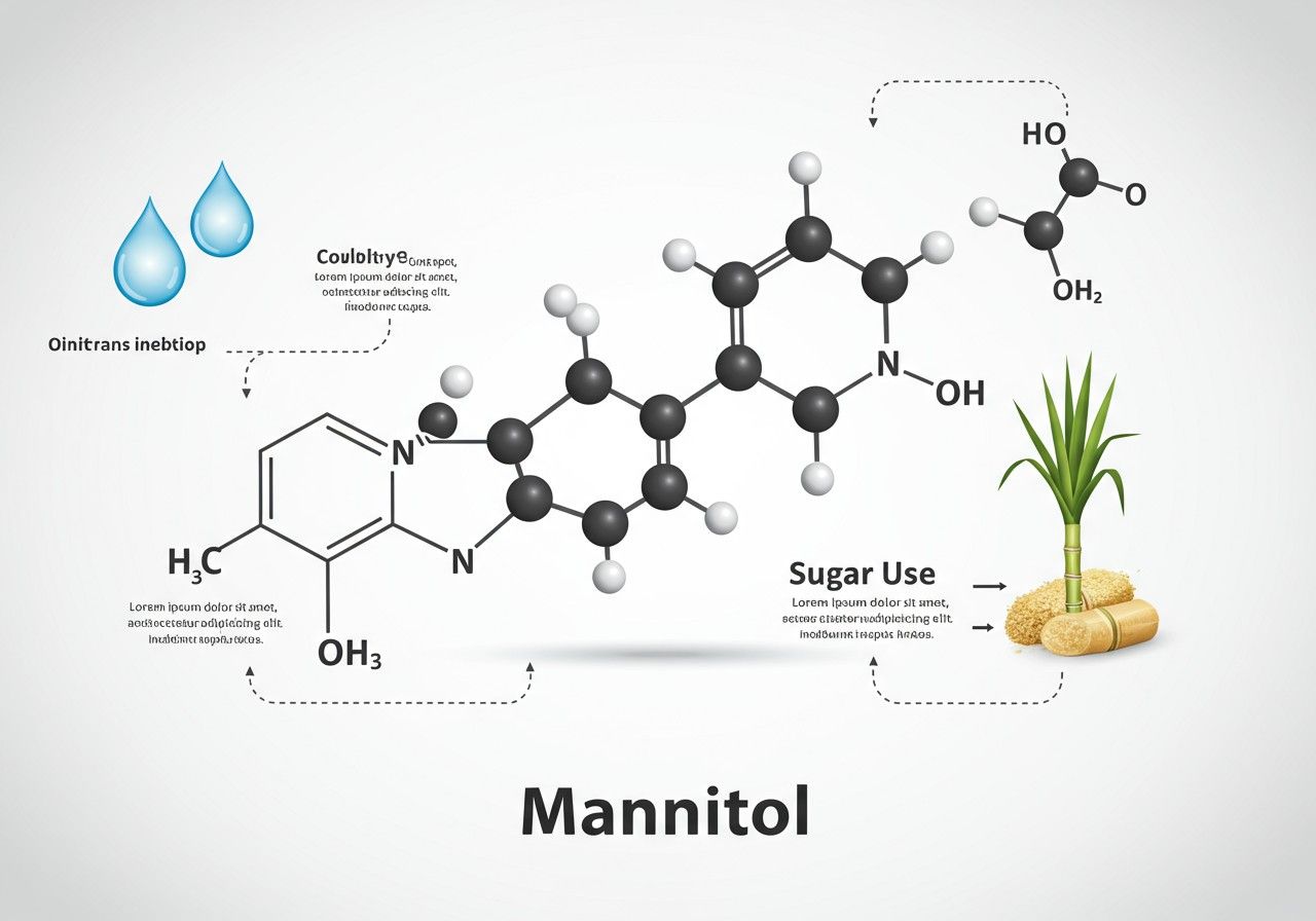 - Szívsebészet és szervátültetés: Egyes protokollokban a mannitolt alkalmazzák a szívizom vagy más szervek védelmére ischaemia-reperfúziós sérülés ellen, bár a bizonyítékok ezen a területen még nem egyértelműek.